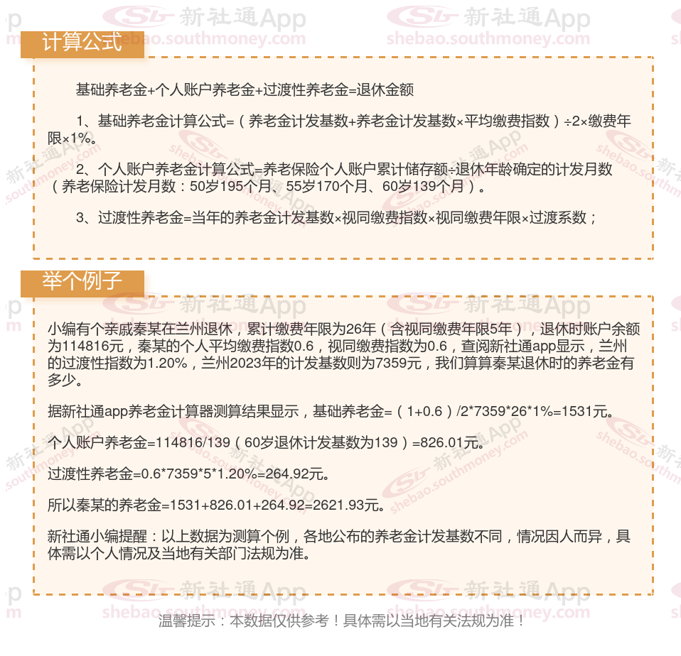 兰州养老金计算公式2024年计算方法(在线计算器)