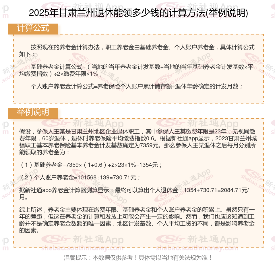 甘肃兰州养老金计算公式2024年计算方法(在线计算器)
