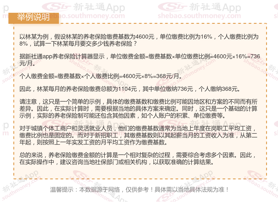 在单位参加职工社保,个人养老保险缴费比例为8%,而单位的缴费比例为16%。其中,缴费基数的下限为4600元。