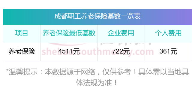 成都养老保险缴费基数2023-2024年最新标准(最低)