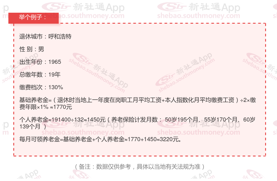 新社通app养老金计算器计算所得: