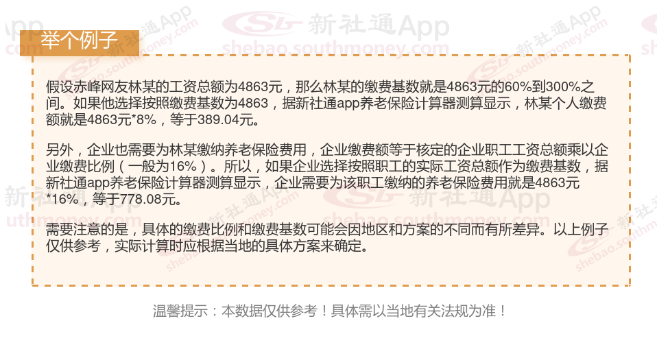 据新社通app显示,赤峰职工养老保险缴费基数2024-2025年最新标准如下: