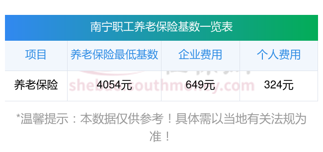 根据有关法规,南宁企业职工基本养老保险缴费基数暂按不低于4053.6元;