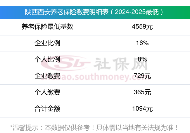 据新社通app显示,2024-2025年陕西西安职工养老保险的缴费标准是根据缴费基数来确定的: