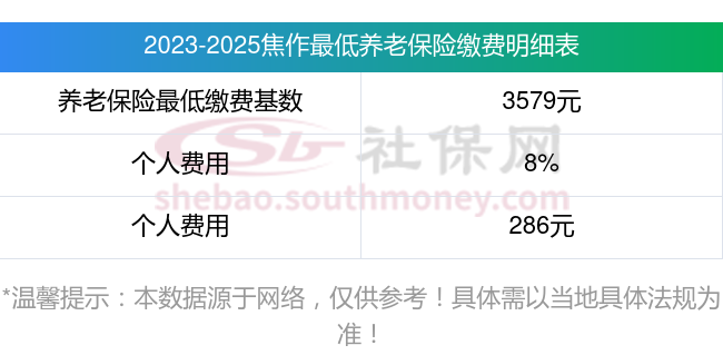 据新社通app获悉,职工养老保险是基本养老保险体系的重要组成部分,它采取的是单位与个人共同缴费的机制。一般而言,个人的缴费比例为8%。在常规情况下,单位所缴纳的养老保险费用会直接汇入养老保险统筹基金账户中,用于整个养老保险体系的资金积累和运作。那么,焦作养老保险2023-2025年缴费标准是多少?下面随新社通app小编一起来看看详情吧。