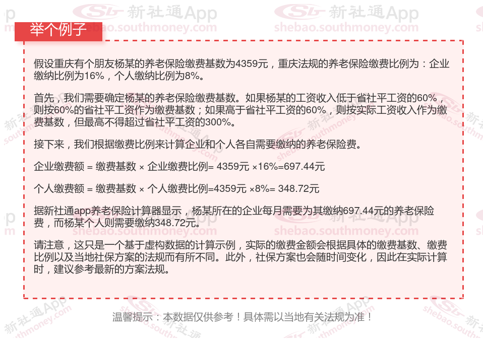 据新社通app显示,2024-2025年重庆职工养老保险的缴费标准是根据缴费基数来确定的: