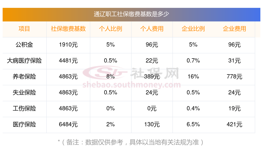 2025年通辽5险缴费标准,2025年通辽社保缴费多少钱?下表是2025年通辽社保费用明细参考,新社通app-社保缴费查询工具提供的最新数据如下: