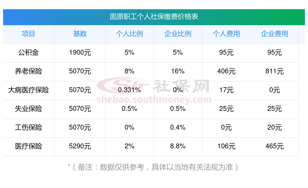 2025年固原社保缴纳比例,2025年固原社保缴费多少钱?下表是2024-2025年固原社保费用明细参考,新社通app-社保缴费查询工具提供的最新数据如下: