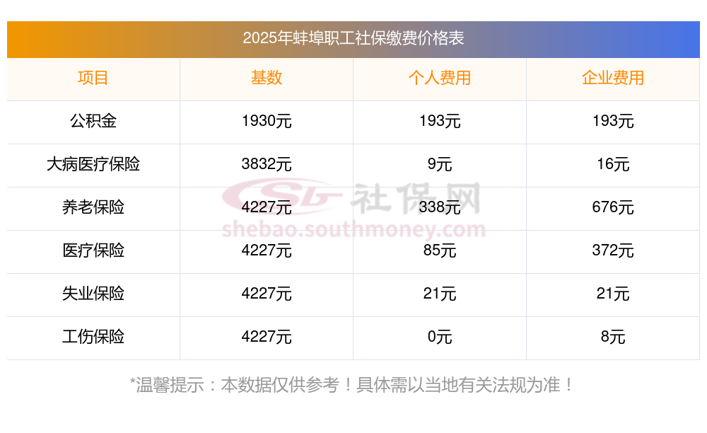 五险一金扣多少?蚌埠五险一金扣多少钱?下表是2024-2025年蚌埠社保费用明细参考,新社通app-社保缴费查询工具提供的最新数据如下: