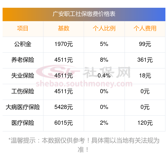 四川社保个人怎么交费?下表是2024-2025年广安社保费用明细参考,新社通app-社保缴费查询工具提供的最新数据如下: