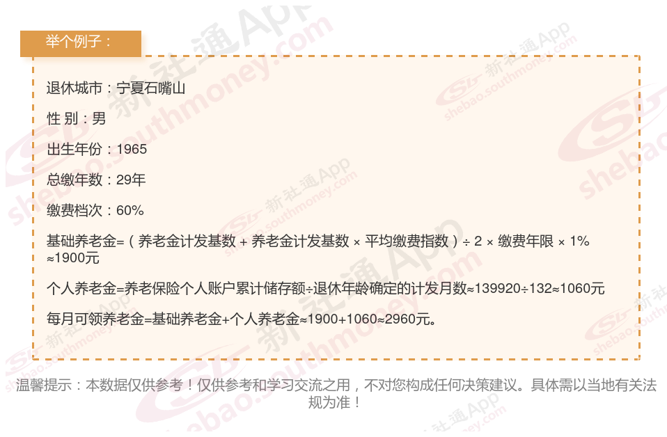 将基础养老金与个人养老金相加,我们就可以得出每月可领取的养老金总额。即1900元(基础养老金)加上1060元(个人养老金),总计约为2960元。这个数字为退休人员提供了一个相对稳定的月度收入来源。