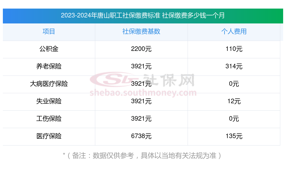 2025年唐山社保缴费价格,2025年唐山社保缴费多少钱?下表是2025年唐山社保费用明细参考,新社通app-社保缴费查询工具提供的最新数据如下: