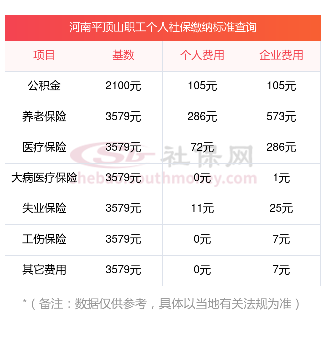 五险一金扣多少?河南平顶山五险一金扣多少钱?下表是2024-2025年河南平顶山社保费用明细参考,新社通app-社保缴费查询工具提供的最新数据如下: