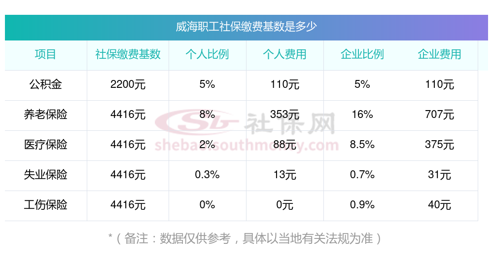 2025年威海社保缴费价格标准是多少,2025年威海社保缴费多少钱?下表是2025年威海社保费用明细参考,新社通app-社保缴费查询工具提供的最新数据如下: