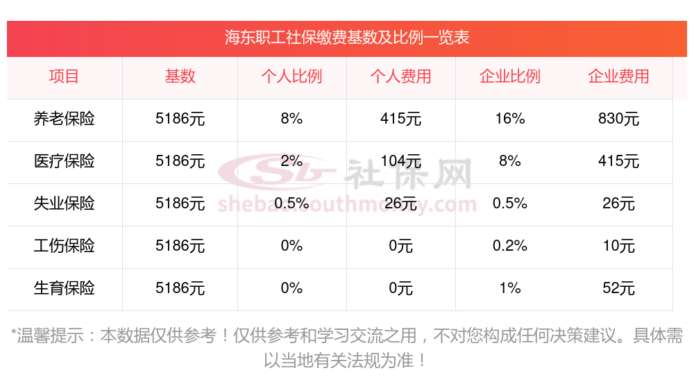 2025年海东社保缴纳比例,2025年海东社保缴费多少钱?下表是2024-2025年海东社保费用明细参考,新社通app-社保缴费查询工具提供的最新数据如下: