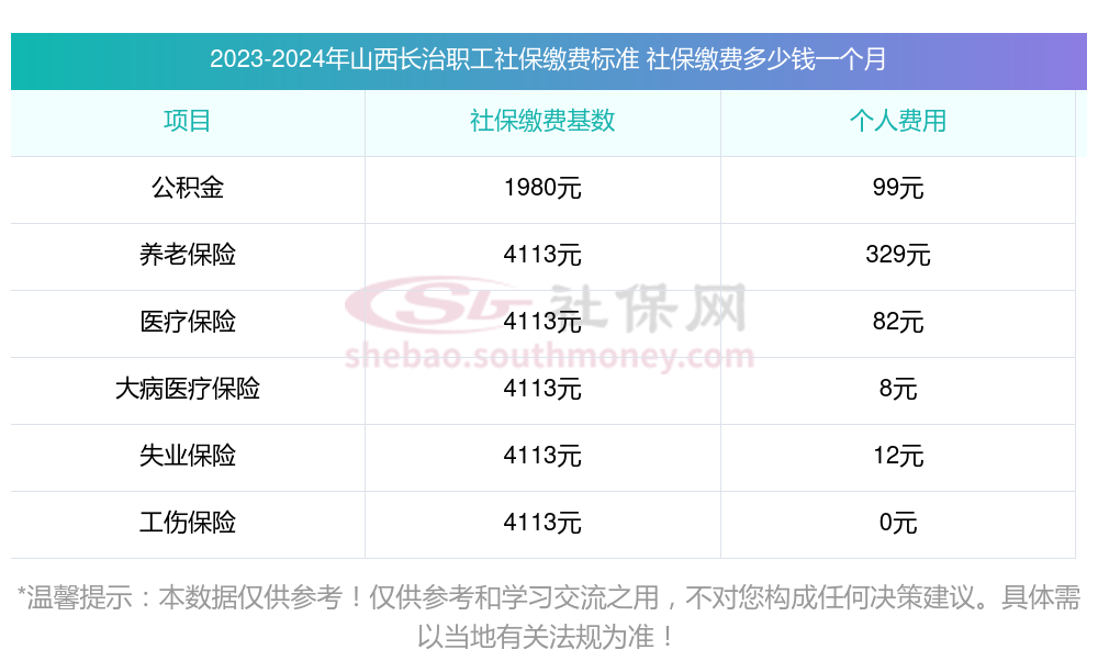2025年山西长治社保缴费最低基数及个人和单位具体是多少钱?下表是2025年山西长治社保费用明细参考,新社通app-社保缴费查询工具提供的最新数据如下: