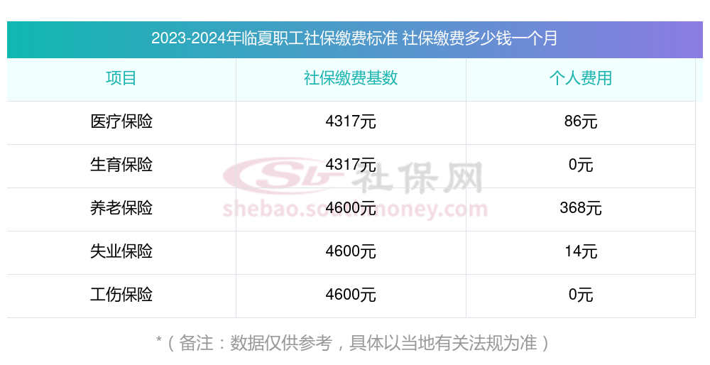 2025年临夏社保缴费价格,2025年临夏社保缴费多少钱?下表是2025年临夏社保费用明细参考,新社通app-社保缴费查询工具提供的最新数据如下: