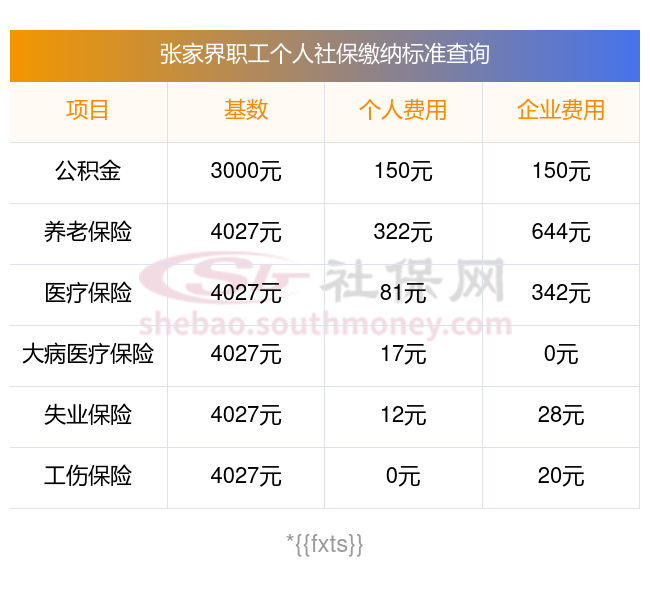 2025年张家界社保缴费价格,2025年张家界社保缴费多少钱?下表是2025年张家界社保费用明细参考,新社通app-社保缴费查询工具提供的最新数据如下: