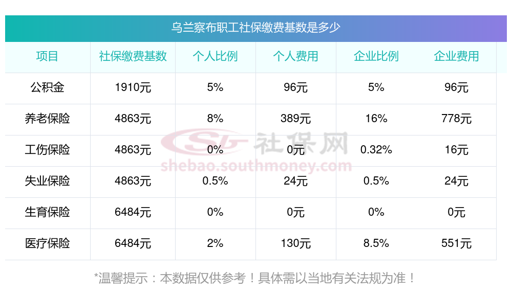 2025年乌兰察布5险缴费标准,2025年乌兰察布社保缴费多少钱?下表是2025年乌兰察布社保费用明细参考,新社通app-社保缴费查询工具提供的最新数据如下: