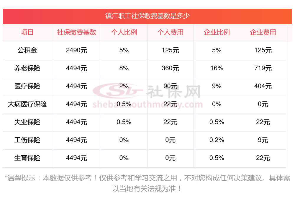 镇江2025年养老保险缴费标准是多少?下表是2025年镇江社保费用明细参考,新社通app-社保缴费查询工具提供的最新数据如下: