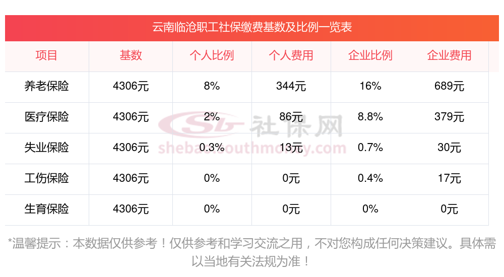 2025云南临沧社保缴费标准一览表?新社通app-社保缴费查询工具提供的最新数据如下: