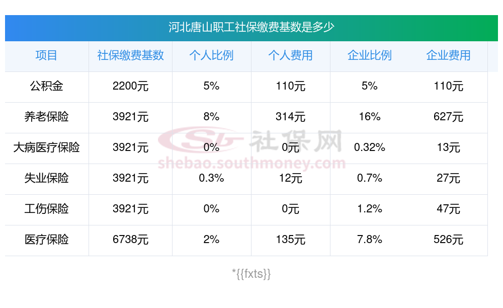 2025年河北唐山社保缴费价格,2025年河北唐山社保缴费多少钱?下表是2025年河北唐山社保费用明细参考,新社通app-社保缴费查询工具提供的最新数据如下: