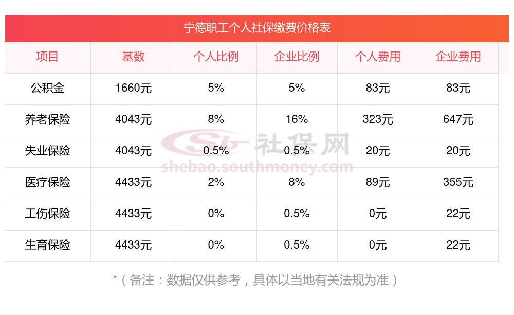 2025社保交多少钱?下表是2025年宁德社保费用明细参考,新社通app-社保缴费查询工具提供的最新数据如下: