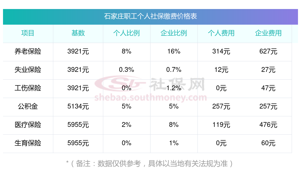 2025年石家庄社保缴费价格,2025年石家庄社保缴费多少钱?下表是2025年石家庄社保费用明细参考,新社通app-社保缴费查询工具提供的最新数据如下: