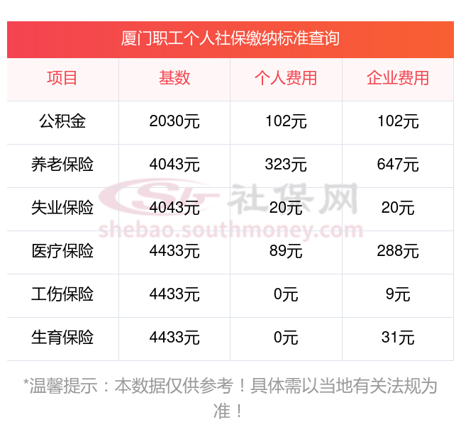 厦门社保缴费一个月多少钱?2025年社保缴费最新标准据新社通app-社保缴费查询工具数据显示如下:
