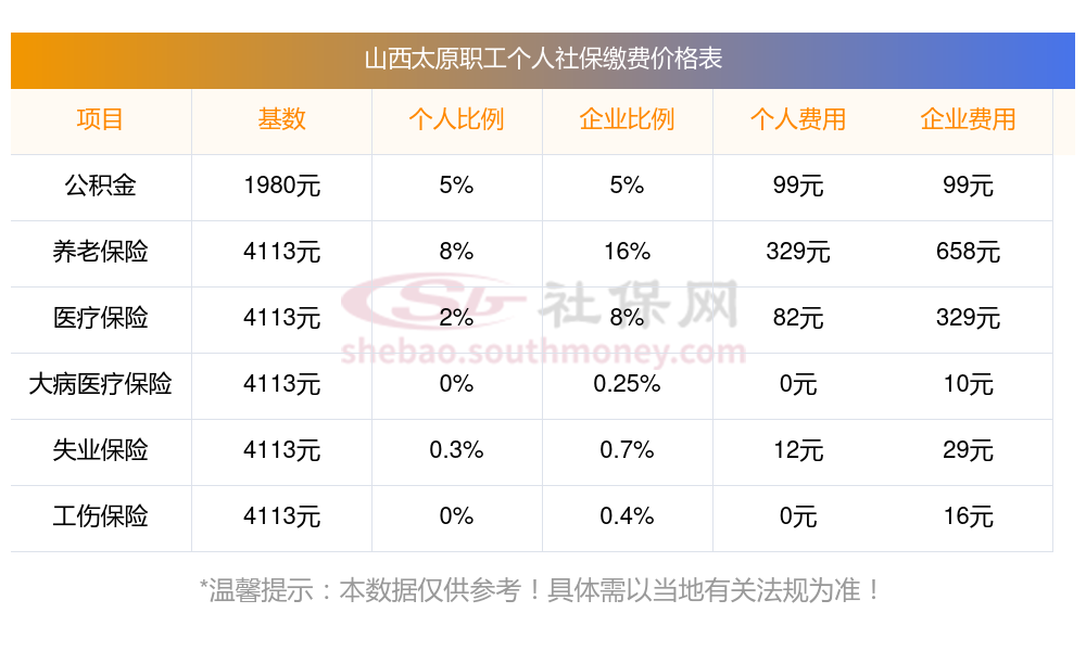 企业五险一个月交多少钱公司加个人是多少?下表是2024-2025年山西太原社保费用明细参考,新社通app-社保缴费查询工具提供的最新数据如下: