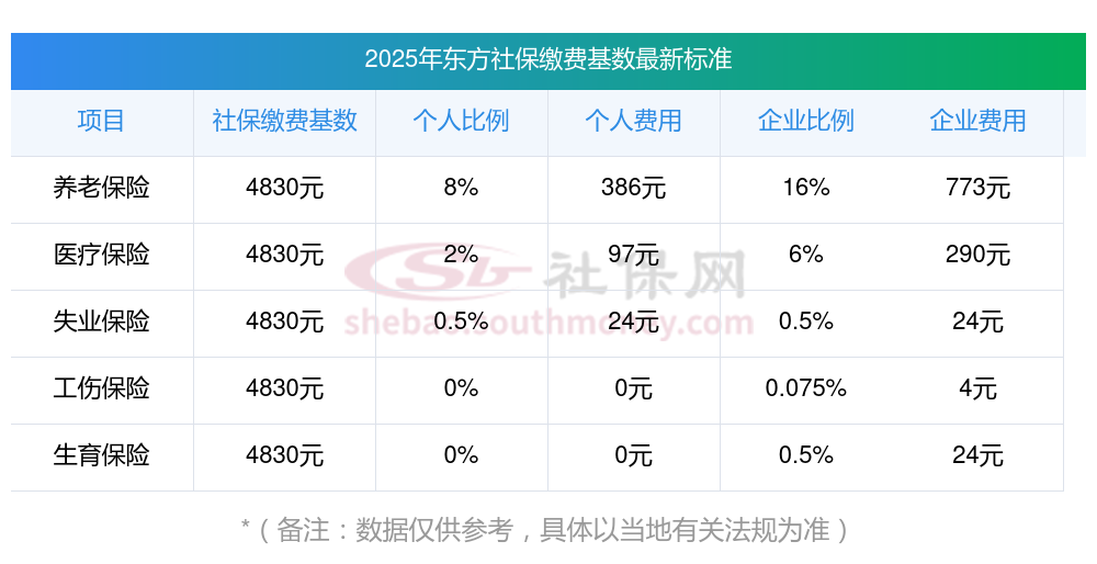 单位五险一个月交多少钱公司加个人是多少?下表是2024-2025年东方社保费用明细参考,新社通app-社保缴费查询工具提供的最新数据如下: