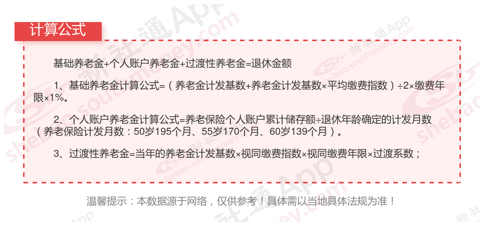退休金=基础养老金+个人账户养老金+过渡性养老金