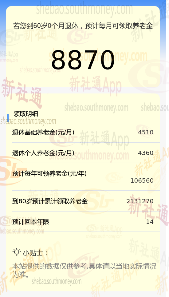 个人养老金计算结果:将上述数据代入公式,得出林某的个人养老金为每月约4360元。