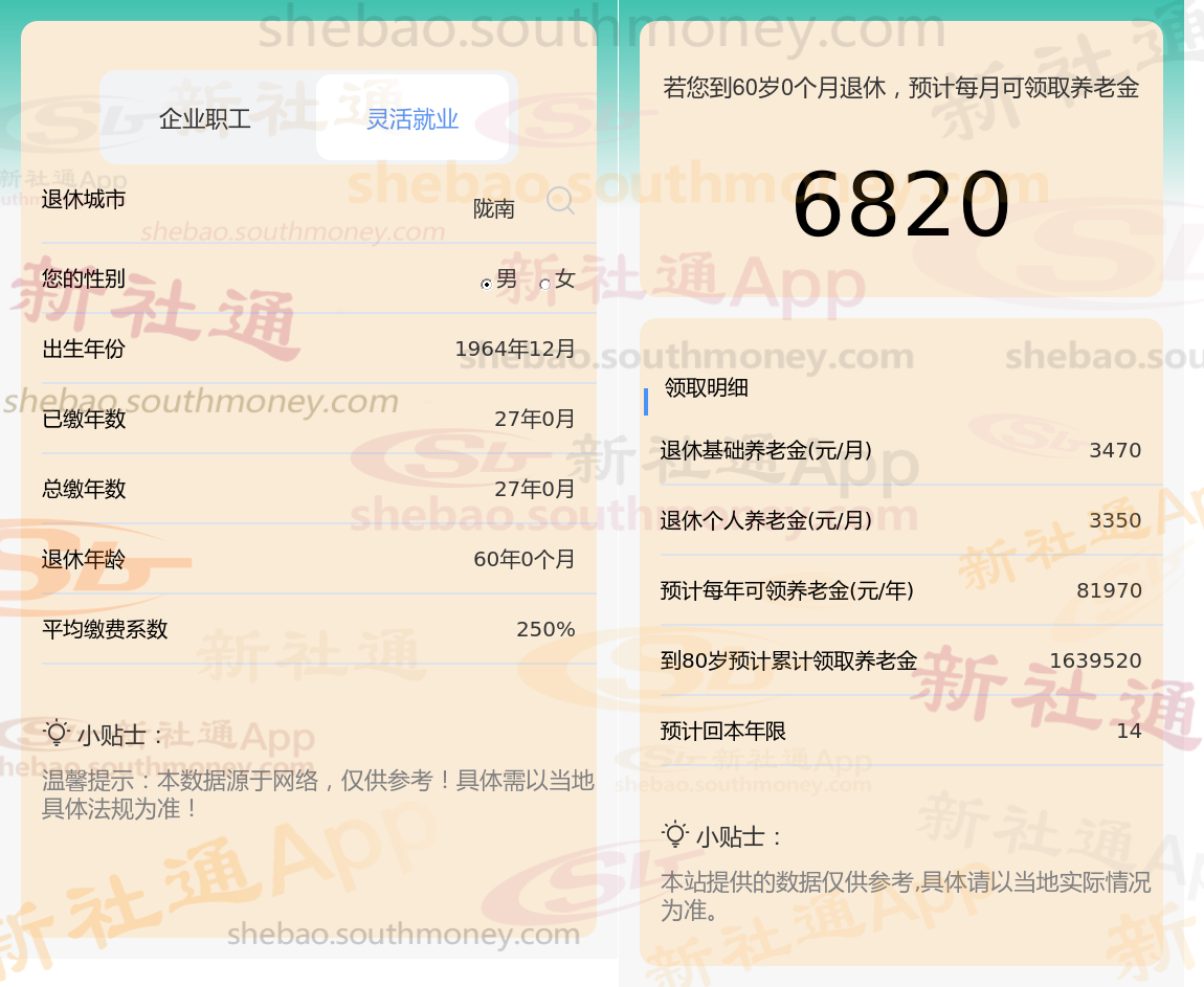杨某,他一直以来都坚持按照250%的比例来缴纳灵活就业社保。27年来,他为自己的未来储备下了一笔社保基金。今年,他迎来了退休年龄,并开始享受起了社保带来的福利—每月可以领取大约到6820元的养老金。他自己细细算了一笔账,发现按照这个养老金的发放标准,仅仅需要14年多的时间,就能完全收回之前所投入的社保成本。