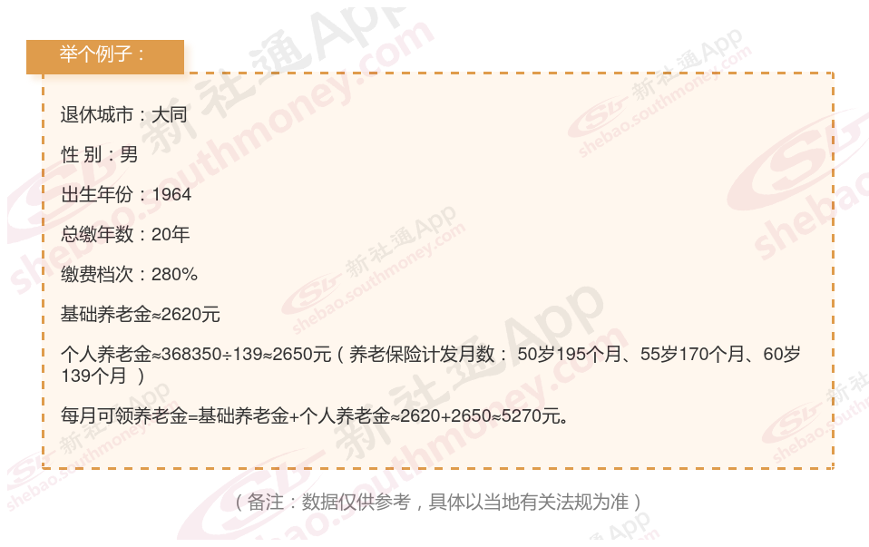 一名大同男性退休人员的概况:他出生于1964年,作为职工已缴纳社保满20年,且缴费档次达到280%。