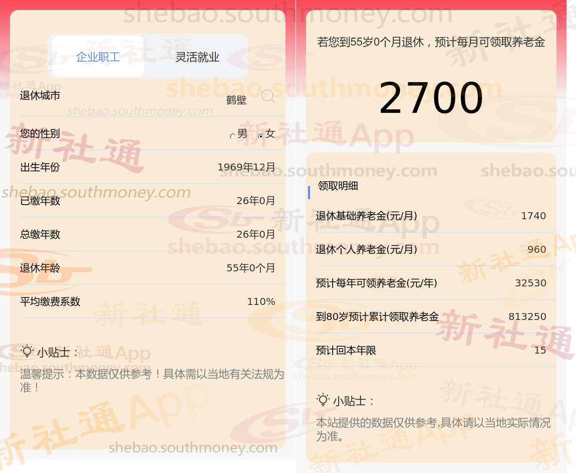 个人养老工资:个人账户养老金=总共交的养老保险/计发月数。通过公式计算出每月大约960元。