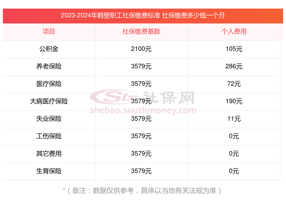 鹤壁社保缴纳情况是怎样的?一起和社保网小编一起来看看下面的明细表:
