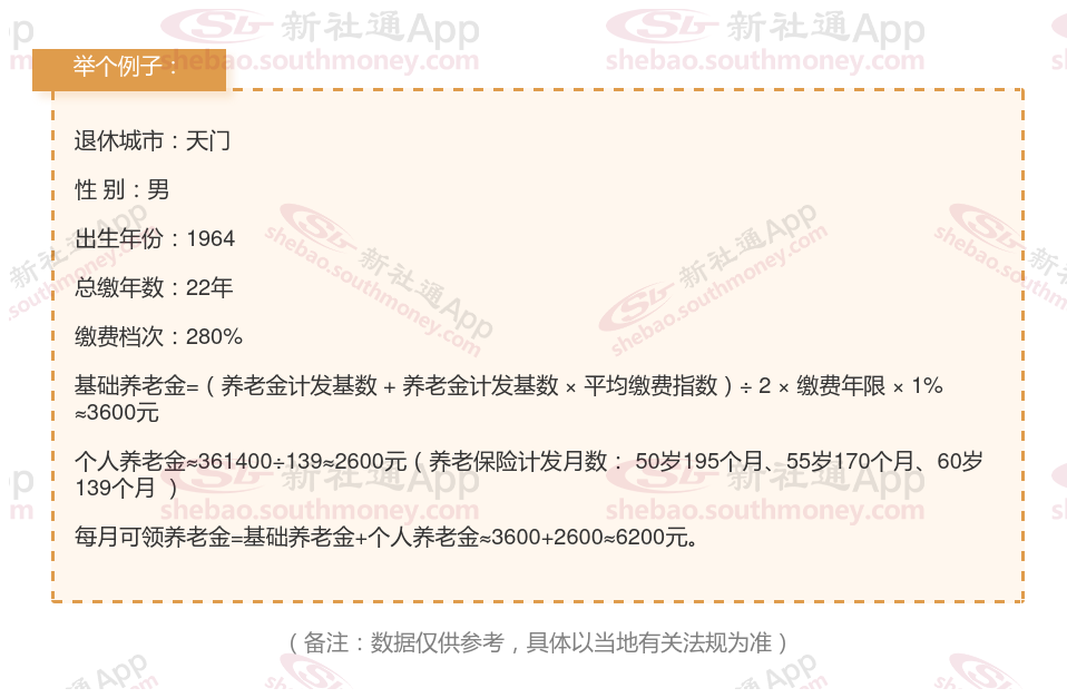下面一起来分享个例子:同事张某,社保缴纳22年要退休了,按280%档位缴纳,估算每月领取大约会比5900元多。计算时有哪些不同?