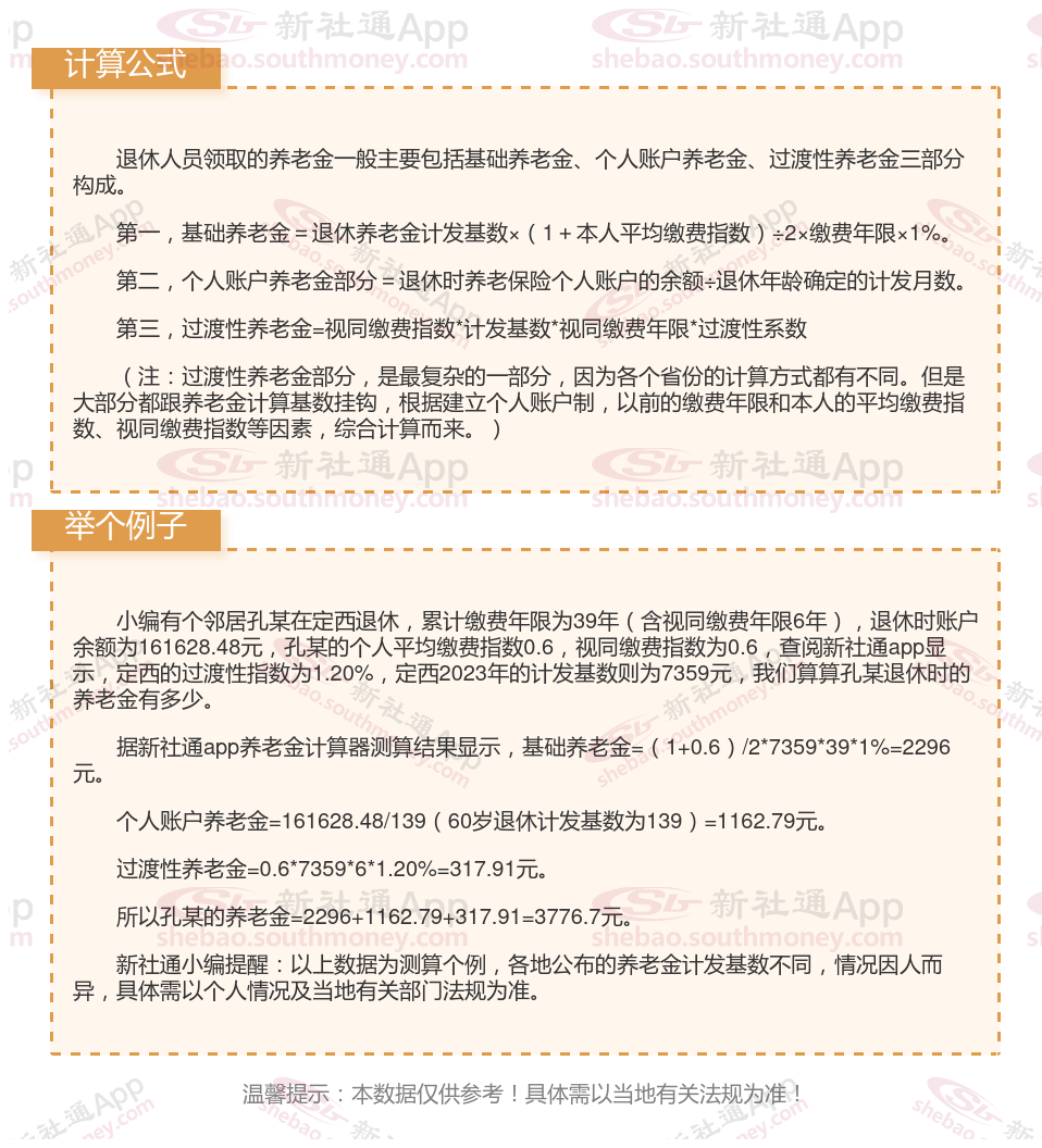 2、个人账户养老金计算公式=养老保险个人账户累计储存额÷退休年龄确定的计发月数(养老保险计发月数:50岁195个月、55岁170个月、60岁139个月)。