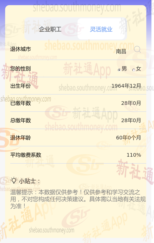 新社通app养老金计算器计算所得: