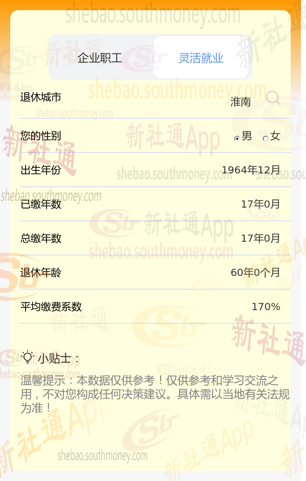 新社通app养老金计算器计算所得: