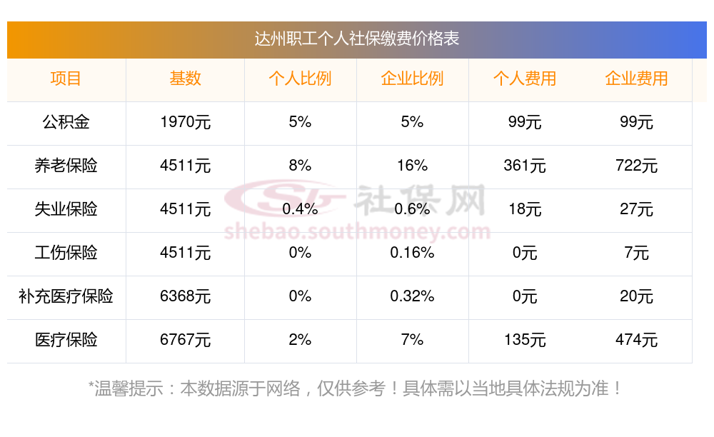 达州社保缴纳情况是怎样的?一起和新社通小编一起来看看下面的明细表: