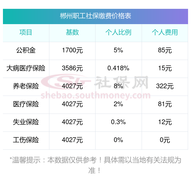 郴州社保缴纳情况是怎样的?一起和新社君一起来看看下面的明细表: