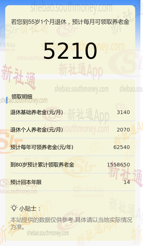 个人养老金计算结果:将上述数据代入公式,得出希某的个人养老金为每月约2070元。