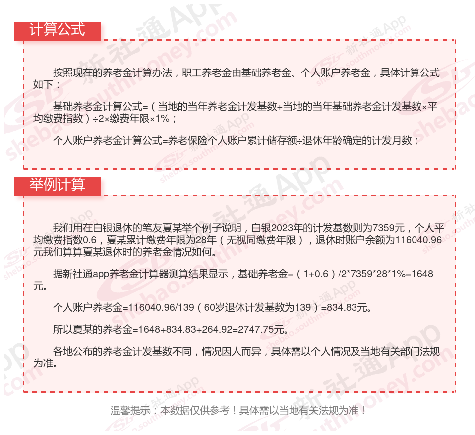 个人账户养老金的计算。个人账户养老金=个人账户累计储存额÷计发月数(例:50岁195个 月、60岁139个月)。