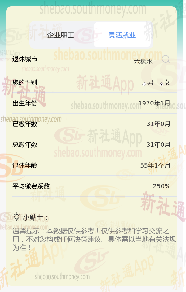 和新社APP一起看个例子,六盘水工龄31年养老退休金如何计算?