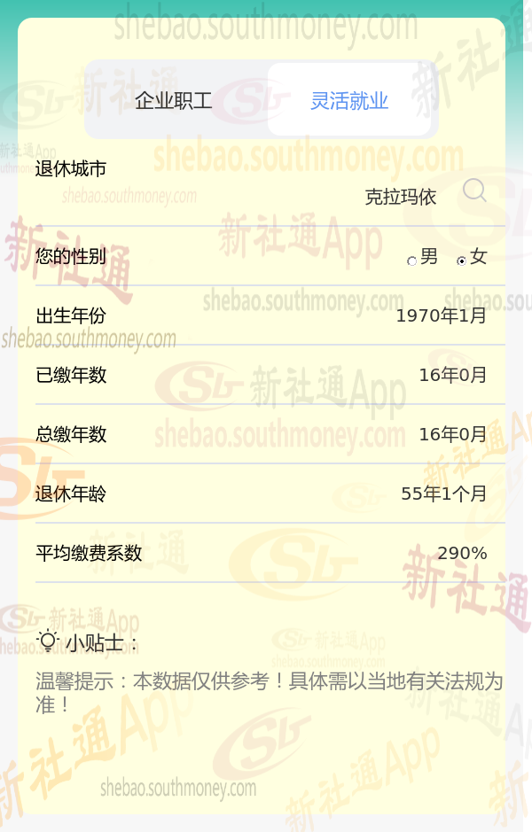 新社通app养老金计算器计算所得: