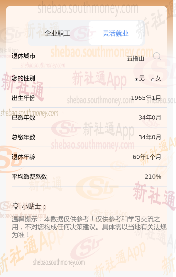 新社通app养老金计算器计算所得: