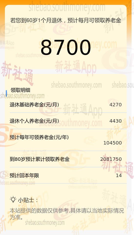 新社通app养老金计算器算出养老工资能开多少?