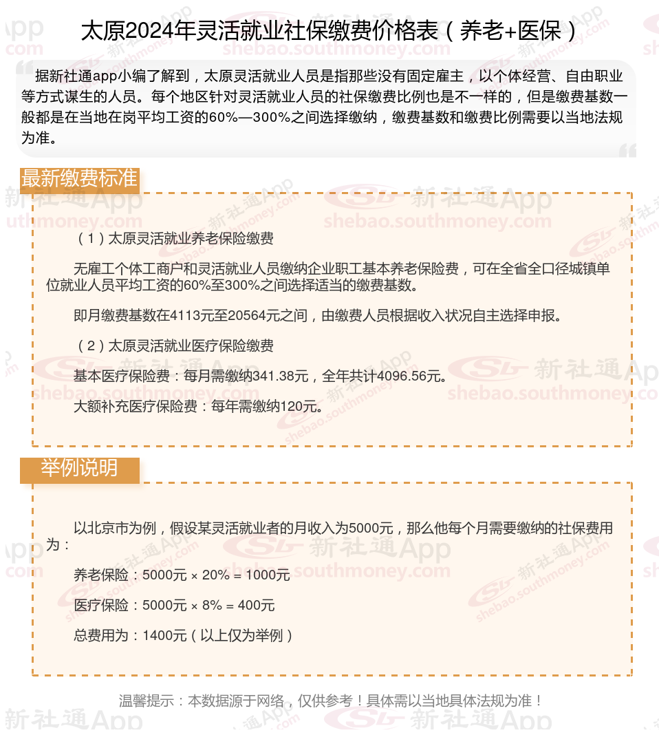 据新社通app数据显示,太原灵活就业养老缴费基数明细如下: